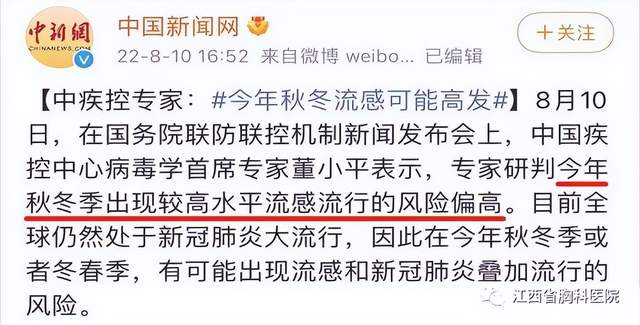 夏去秋来渐转凉。秋冬季是流感、肺炎等呼吸道传染病和各类感染疾病的高发季节,大家要做好预防,尤其要保护家中老人免受流感病毒和肺炎球菌侵袭。江西省胸科医院预防接种门诊流感疫苗已经开打了!!!接种前,您有必要了解这些: