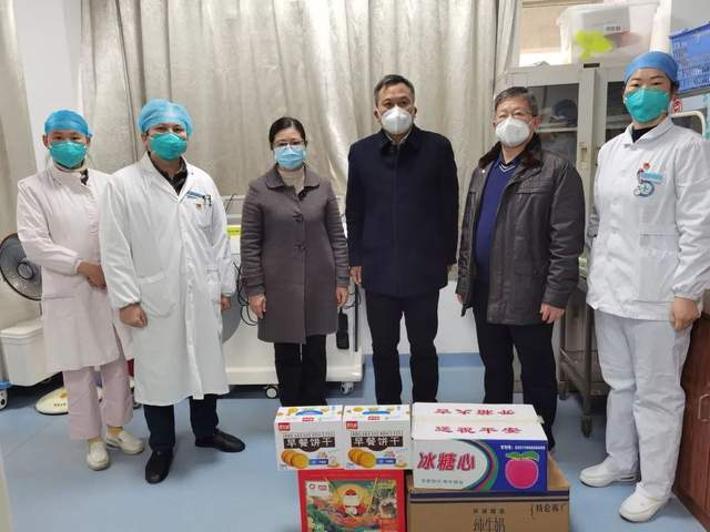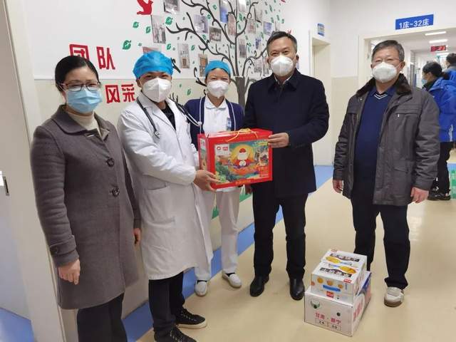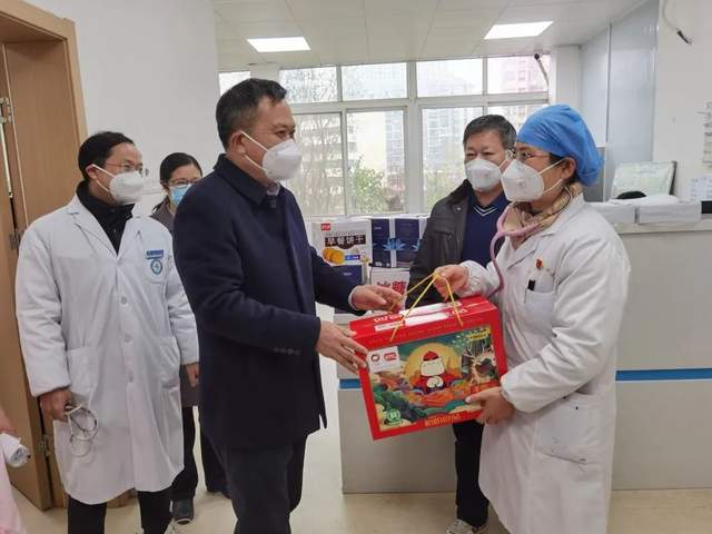 1月3日上午,元旦假期后的第一个工作日,江西省胸科医院党委书记郭贵周、院长车达平等全体院领导和部分职能科室负责人,来到医院各临床、医技科室看望坚守在新冠病毒感染患者救治一线的医务人员,向他们表达关心关爱,同时送上了牛奶、水果等营养品,给予组织的温暖与力量。