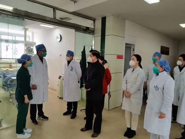 每到一处,一声声问候入耳,一句句叮嘱在心。院党委书记郭贵周表示,当前疫情防控进入新阶段,全国都在面临最为艰难的特殊时期,医护人员不舍昼夜,带病上岗,始终坚守在医疗救治的第一线,充分体现了白衣执甲、勇于担当的精神。在详细了解各科室运行情况、新冠病毒感染患者救治情况以及医护人员健康状况后,郭贵周强调,大家要做好自我健康监测,千方百计抓好患者尤其是危重症患者的救治工作,坚持“应收尽收、应治尽治”,倾尽全力守护好每一位患者的健康,确保各科室工作平稳运行。