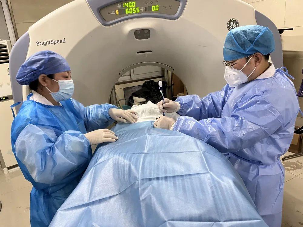 结合多学科会诊,考虑两位患者病灶所处的位置和病人自身的情况;通过MDT团队的讨论交流从病人的病情出发,为两位患者分别制定了一套可行方案——微波消融。分别与家属沟通后,病人和家属都表示非常信任江西省胸科医院专家的方案和精湛的技术,同意消融手术。3月5日下午,在CT引导下,李主任带领团队顺利完成了这两例患者的微波消融术,术中病人无明显不适感,术后,在李主任专业的指导和护士细心的护理下,患者回病房卧床休息,第二天便可下床活动。