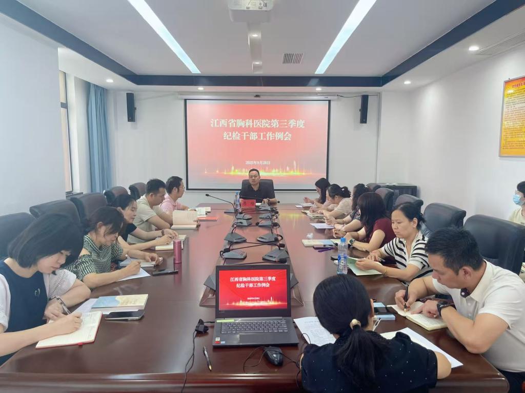 为进一步统一思想、凝聚共识、明确方向、压实责任,持续推动我院纪检工作高质量发展,9月28日,江西省胸科医院纪委召开第三季度纪检干部例会,院纪委委员、各党总支及支部纪检委员、专职纪检干部,共计20余人参加会议,院纪委书记李瞳出席例会并讲话。