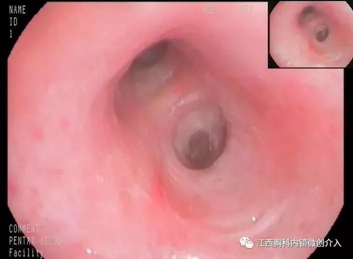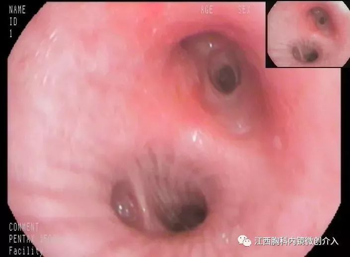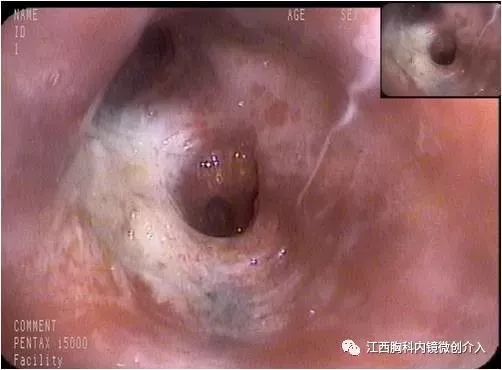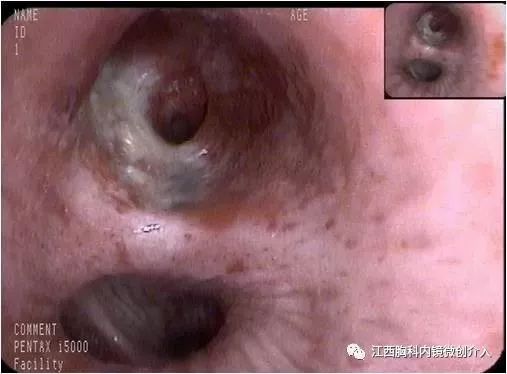 左上支气管开口可见少许瘢痕。