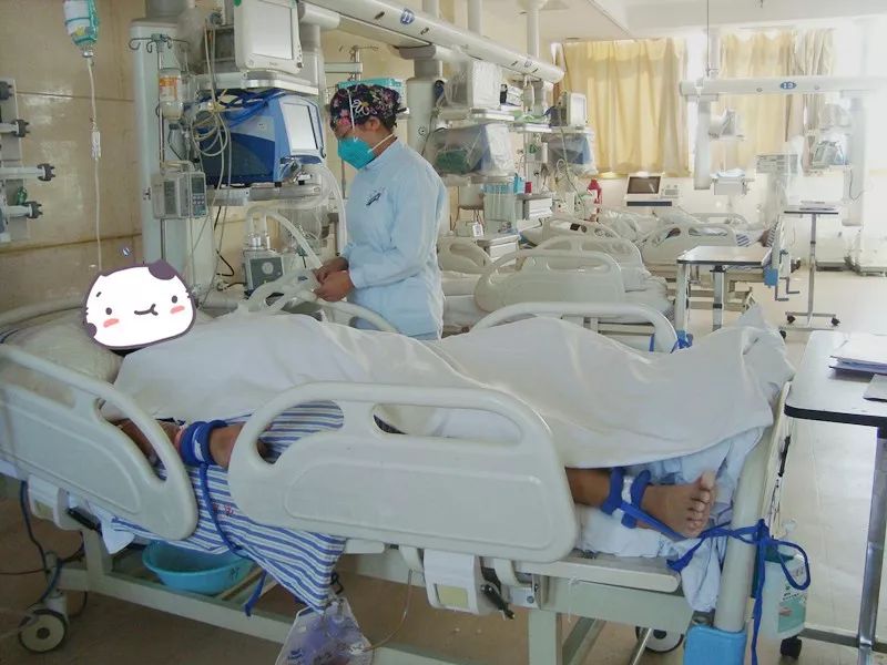 这位破伤风患者嘴里不停的蹦跶出一些消极语言,一边还把脚架出了床栏,一副起身要走出ICU的架势。对于这种躁狂意识模糊的患者,医护人员为了保证其安全,通常在家属同意的情况下使用约束带并每2小时观察局部情况防止损伤皮肤。